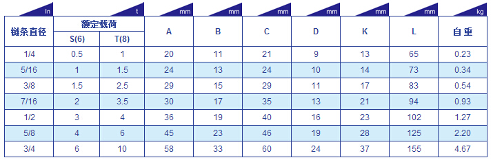 巨力美式羊角滑鉤(帶保險卡)參數(shù)表